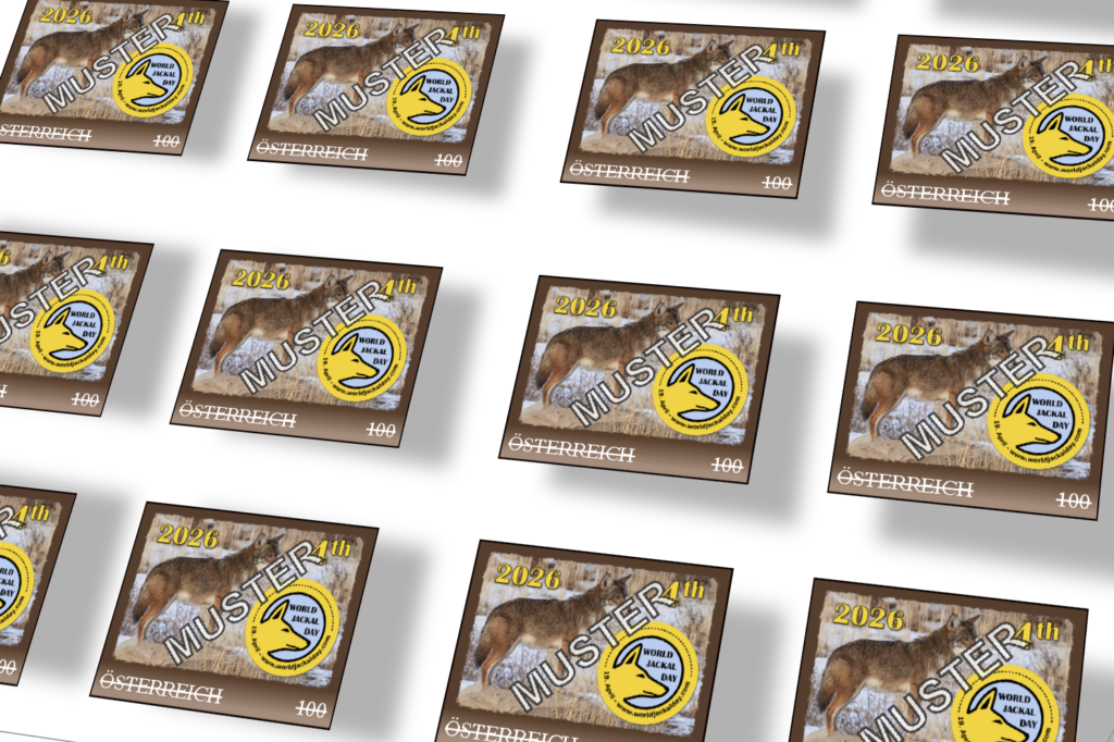 Jedes Jahr gibt es eine Sonderbriefmarke zum Internationalen Tag der Schakale! Sie können hier bestellt werden (bitte schreiben Sie eine Nachricht mit der Bestellmenge und Lieferadresse)